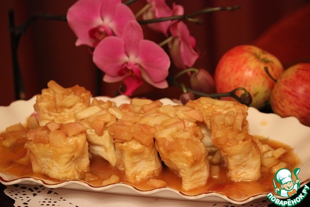 9. Под занавес блюдо с чрезвычайно понравившейся мне идеей!!! Настоятельно рекомендую, ибо дело не хлопотное, а результат вас порадует - Рулетики с творогом под яблочной карамелью от Катеньки