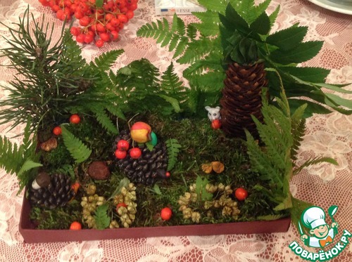 Ну, тут мы горьким опытом наученные, лесные запасы сделали заранее. Как всегда в начале года конкурс и нужна поделка «Дары леса».