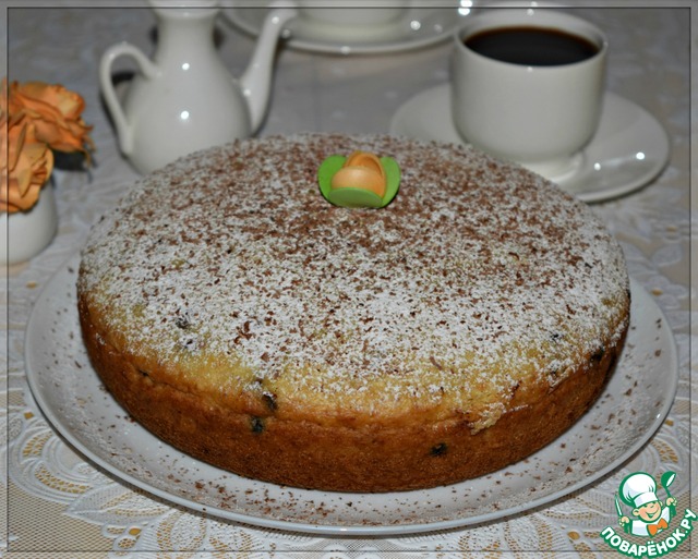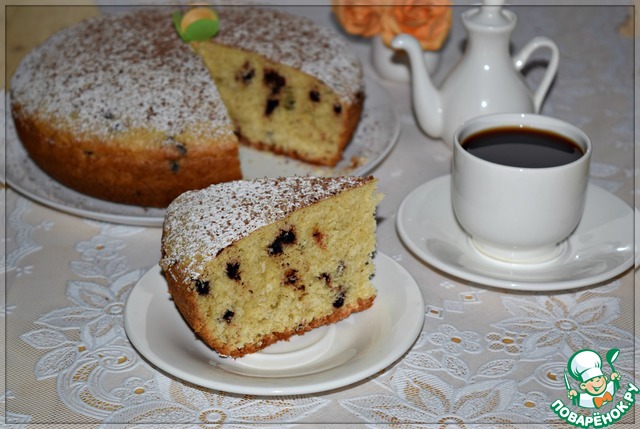 Прелестный пирог! Пышный, воздушный, нежный, очень вкусный. Удивляюсь, как из таких простых ингредиентов получился такой шикарный красавец, вкуснейший красавец. Пирог нам очень понравился. (поскольку кокосовая стружка у меня была только белая, мне захотелось придать пирогу некую изюминку и я добавила в тесто шоколадные капли)