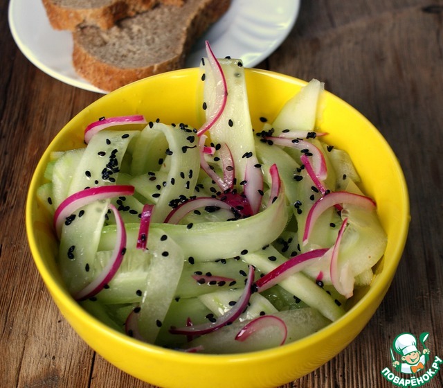 Олечкины рецепты рецепты всегда филигранно выверены, готовить по ним одно удовольствие. Не стал исключением и этот салат - легкий, сочный, пикантный. Готовится быстро, съедается еще быстрее