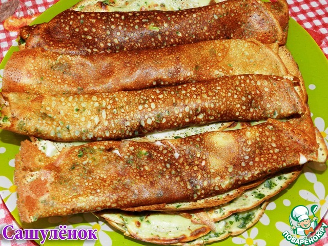 № 4. "Блины с сыром и шпинатом" от ЮльчикПро https://www.povarenok.ru/recipes/show/134311/