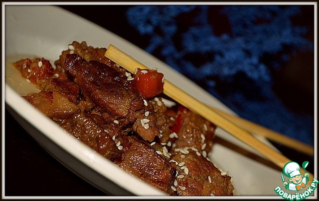 Очень броский вкус у мяса! То, как Ира расписала приготовление — сплошная польза. Ну, я ещё пока не спец в этом... некоторые кусочки у меня вышли чуть суховаты и жестковаты. Но мужу очень понравилось, да и мне самой очень и очень — немного ингредиентов, дополняющих мясо, а вкус необыкновенный. Перца острого (у меня молотый) положила чуть-чуть совсем, потому что знала, что Дитёнок захочет попробовать. Поэтому мясо совсем не было острым. Зато сын схомячил свою порцию, да ещё и папки несколько кусочков отжал Спасибо Ире за доступный рецепт!