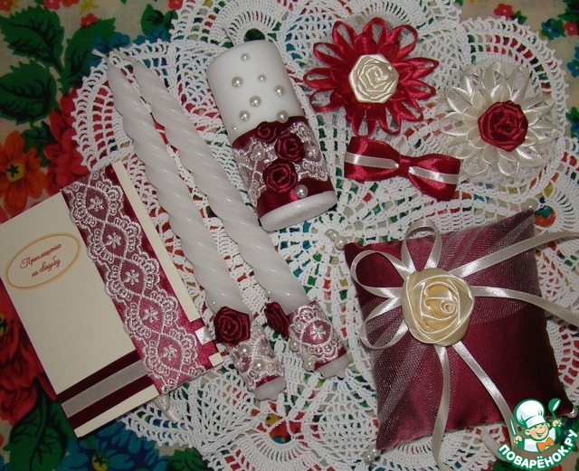 Очага и свечей для родителей, бутоньерок для гостей (для женщин цветочки, для мужчин бантики)
