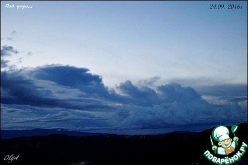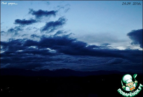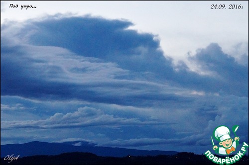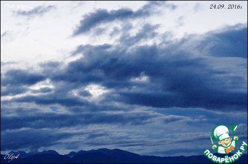 Небо живёт своей жизнью. Я помню себя в детстве, когда я ложилась на лавочку около подъезда и смотрела в небо. В голову лезли всякие фантазии, передо мной проплывали целые волшебные миры и диковинные звери. Облака плыли и менялись. Помните, у Маяковского? "По небу плыли тучки. Тучек четыре штучки. С первой по третью - люди, а четвёртая была - верблюдик". Молчу про белогривых лошадок... Сейчас я просто любуюсь скоплением красоты, цветом и разновеликими мотками этих самых облаков. А они иногда играют со мной. Вот, например - закрывают горы. Смотришь - гор нет.