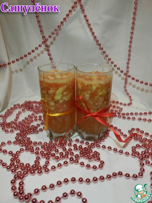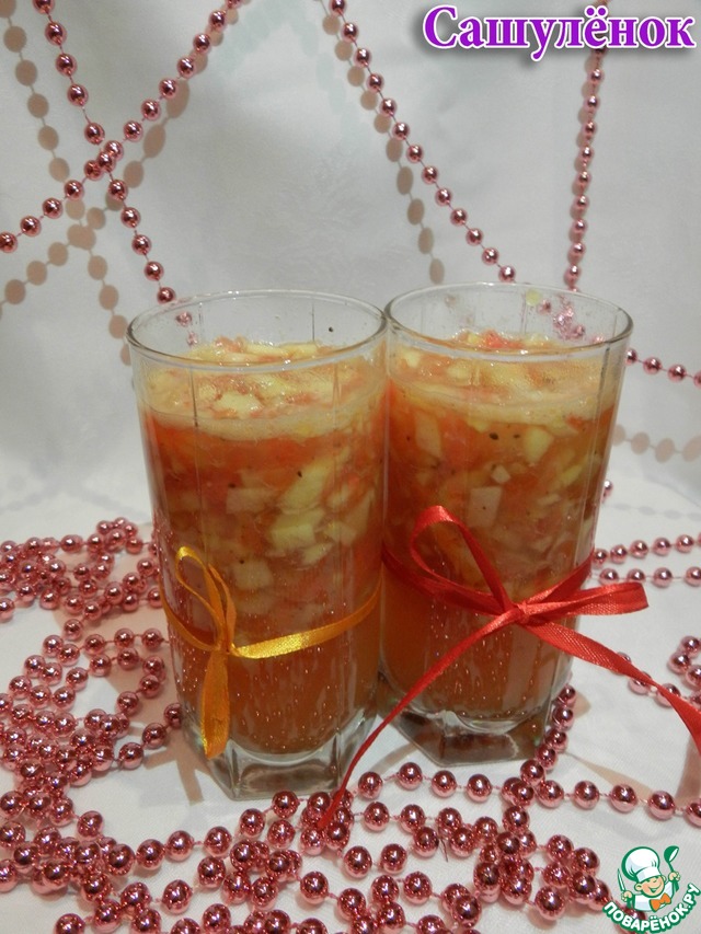 Готовил Макс. Такой простой рецепт - и такой замечательный результат! Сочно, свежо, ароматно, бодряще! Непременно беру на вооружение для борьбы с летней жарой.
