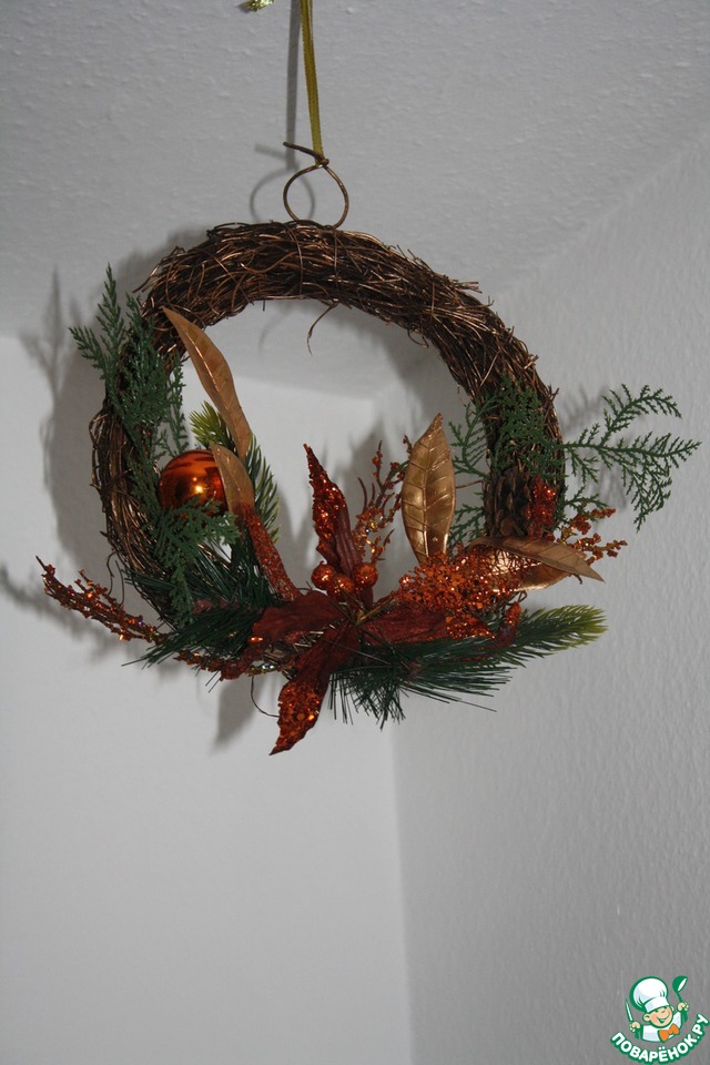 Инга а венок мы сами из елки исскуственной крутили венок большой , почти все игрушки что на простой елке висели теперь там помещаются больше метра в диаметре