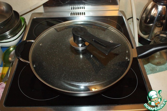Размер как-раз под одну конфорку. Порции 4 получается свинины с овощами..