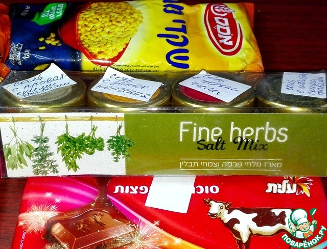Аллочка, прислала варенье из маракуйи ( в пластмассовой бутылочке). Красивый фартучек. Очень ароматный заварной кофе. Четыре баночки соли с разными добавками, чего я очень люблю. Сухарики для бульона, которые в жидкости не размокают. Ароматная цедра лимона в мешочке в ящички с бельём. И самый важный и радостный для меня подарок, это свечи со Святой Иерусалимской Земли.