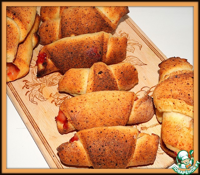 Булочки-рогалики от Наташи hyazinthetmprename. Вкусные рогалики, что тут скажешь. Муки ушло поменьше, творог не слишком то был жирный.