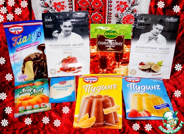 Идем дальше... Добрались до подарочков для "поваренка", т. е. для меня ))) Россыпь прекрасных приправ. Вы только посмотрите на это!!! тут все что я хотела попробовать - приправа для глинтвейна (у нас такую найти не могла) и новая для меня, но сразу полюбившаяся приправа - "кулинарный шедевр" - уже опробовала и влюбилась - ее аромат просто не описать... Если кто знает где можно по интернету заказать приправы и сладости с Украины, подскажите пожалуйста ссылочку... о сладостях будет дальше... Еще тут - агар-агар, пуддинг, ванильный сахар и глазурь - то что нужно всегда!
