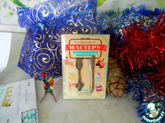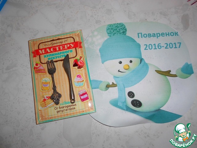 Эмблема акции и очень милый сувенир "Мастеру кулинарного искусства", который я поставила на открытую полку в кухне, от которого я в восторге.