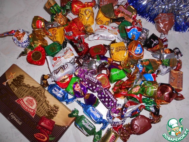 И куча сладостей: разных-разных шоколадный конфет и шоколада. Конфеты очень вкусные, уже начали пробовать, дочка у меня в восторге.