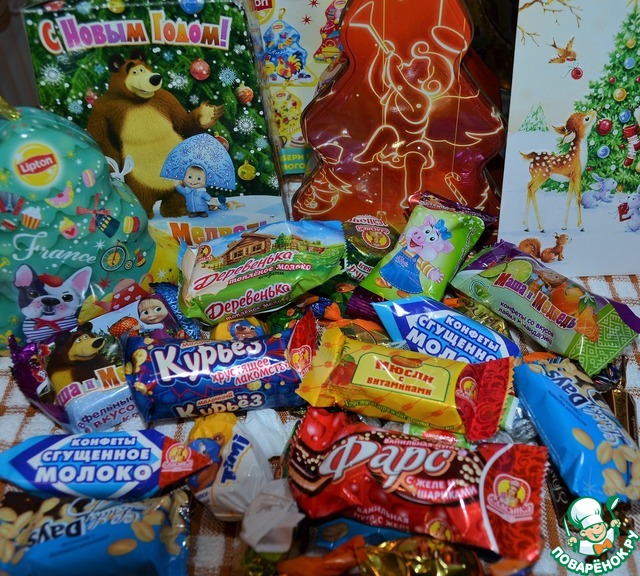 А сколько сладостей, вкуснейшие конфеты в банке - елочке и