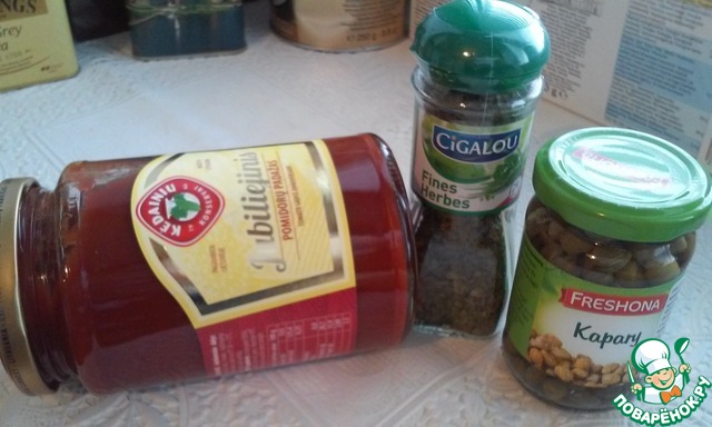 Виолушка мне прислала великолепный томатный соус, каперсы и чудесную приправу, чтобы мои блюда стали еще вкуснее.