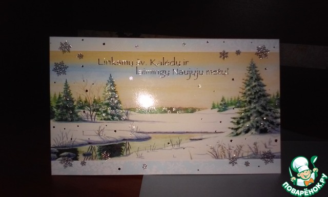 И, конечно, трогательное послание, писанное в красивенной открыточке!