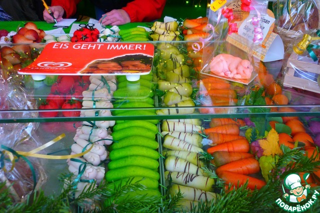 Горы пряников, настоящие произведения искусства из воска, куклы, фигурки, шарфы, украшения, аромат глинтвейна, тонны орехов в карамельной корочке с корицей, чего только нет из марципана - яблоки, бананы, шары, сосиски, белый верх - черный низ, черный верх-белый низblush - есть ВСЕ на вашу фантазию, горячие острые сосиски, жареное мясо, и горячий ликер Сливович - каааак я его полюбила)))))
