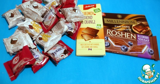 Конфеты и чудесный шоколад ( с черничной нугой, миндалем, карамельной крошкой и апельсиновой цедрой и черный )