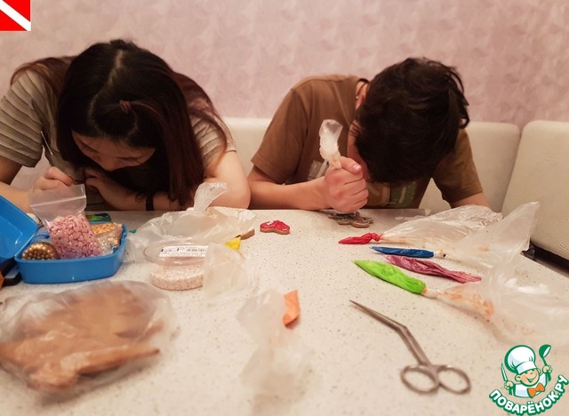 Ну а тут мы с сыном разошлись - красили-перекрасили, мазали-перемазали все пряники. Кто поверит, что весь вечер пыхтели - старались над вот этим?