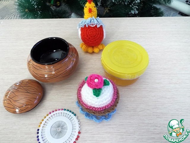 . Прелестный петушок и кексик-игольница с яркими булавками. Снимаю шляпу. Теперь не только могу посмотреть сие творение, но и пощупать.