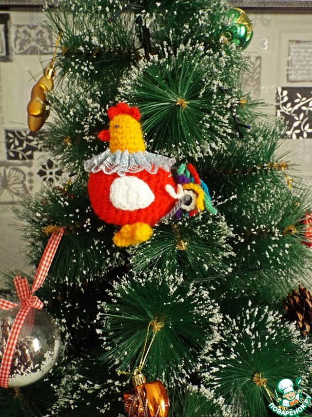 Все подарки были запечатлены, сын принялся собирать машинку. Я поместила символ года на елку. Он там очень даже в тему смотрится. Ниночка, будет напоминать нам о твоих золотых руках