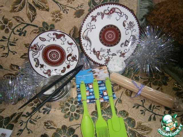Необыкновенной красоты тарелочки, новогодние формочки, силиконовые принадлежности, шпажки и моя мечта - набор сервировочных колец (вот как Наташа догадалась, что они мне нужны?!).