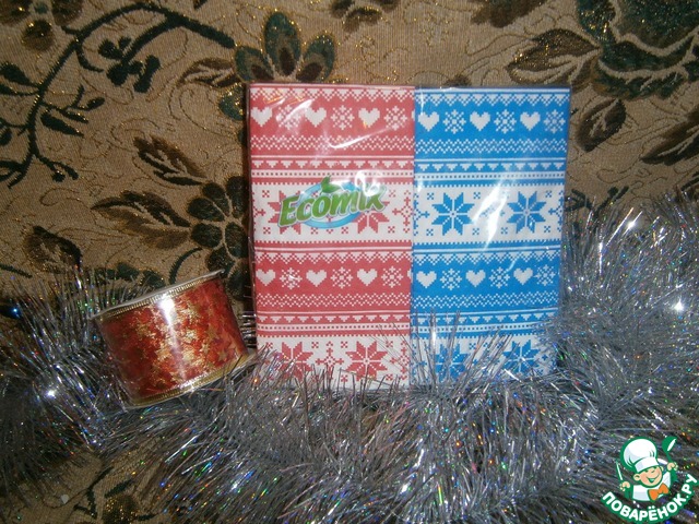 И это еще не все. Праздничные салфетки и красивейшая декоративная лента.