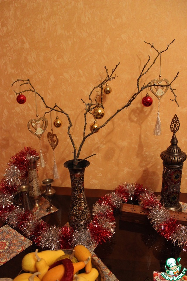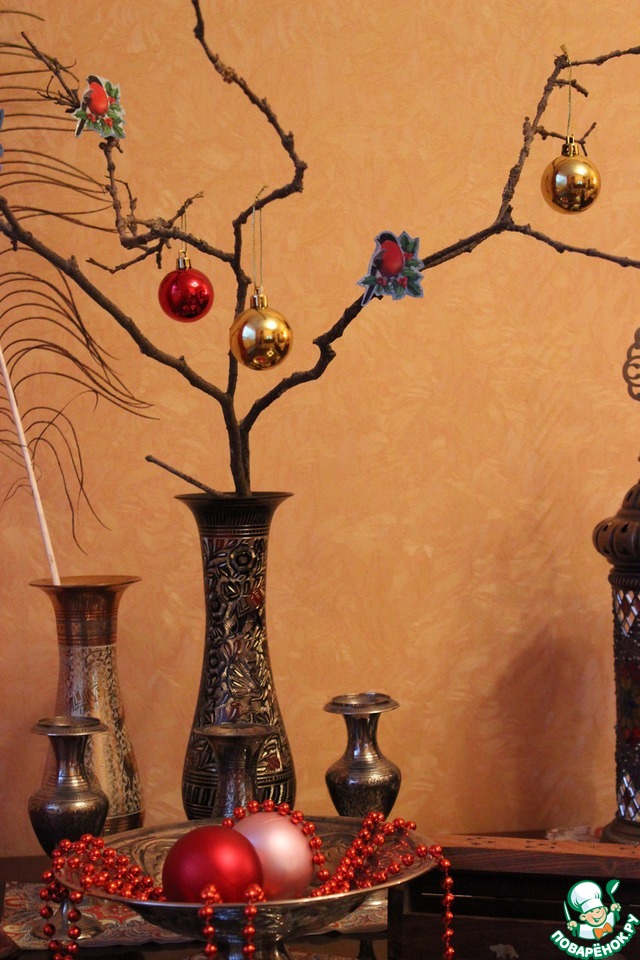 Эту ветку клена я подобрала после сильного ветра пару лет назад. И она служит отличной базой для всякого рода украшательств для гостиной!!!