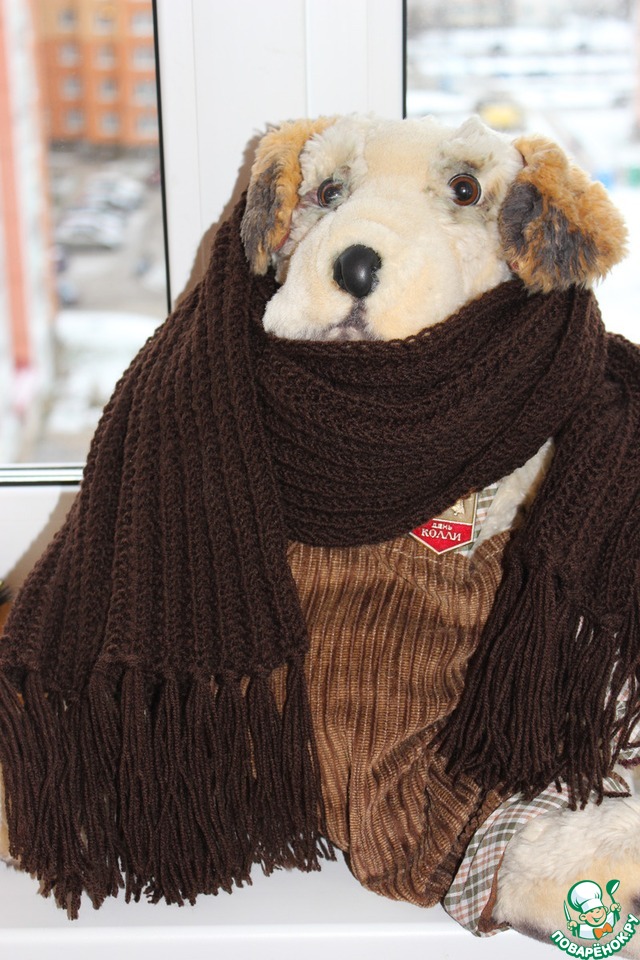 Шарф я связала для папы, но собаке, по-моему, тоже нравится. Как думаете???