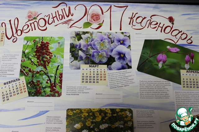 Ну, и, наконец, последняя идея - любимой мамочке я смастерила вот такой календарь!!! Думаю, она придет в неописуемый восторг, т. к. любит цветы и стихи.