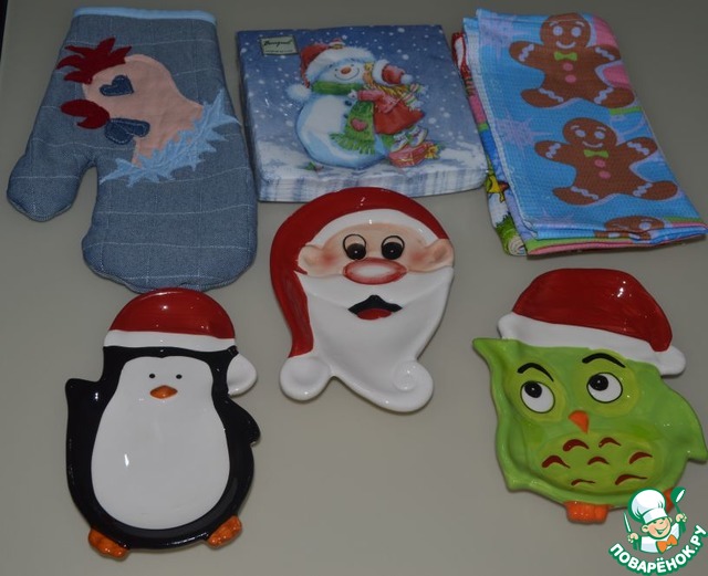 Потом шли такие нужные для нас, хозяек тарелочки, полотенчик, прихватка и салфетки