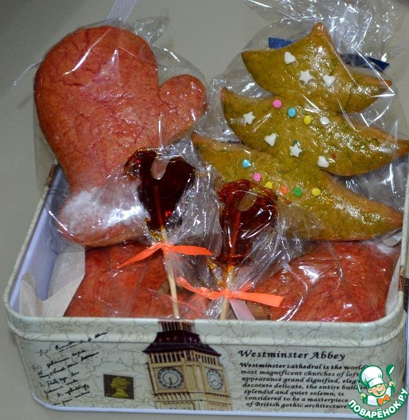 Пряники и леденцы на палочке ручной работы, заботливо уложенные в железную коробку. Когда я открыла коробочку, то такие вкусные ароматы оттуда доносились, ммм...