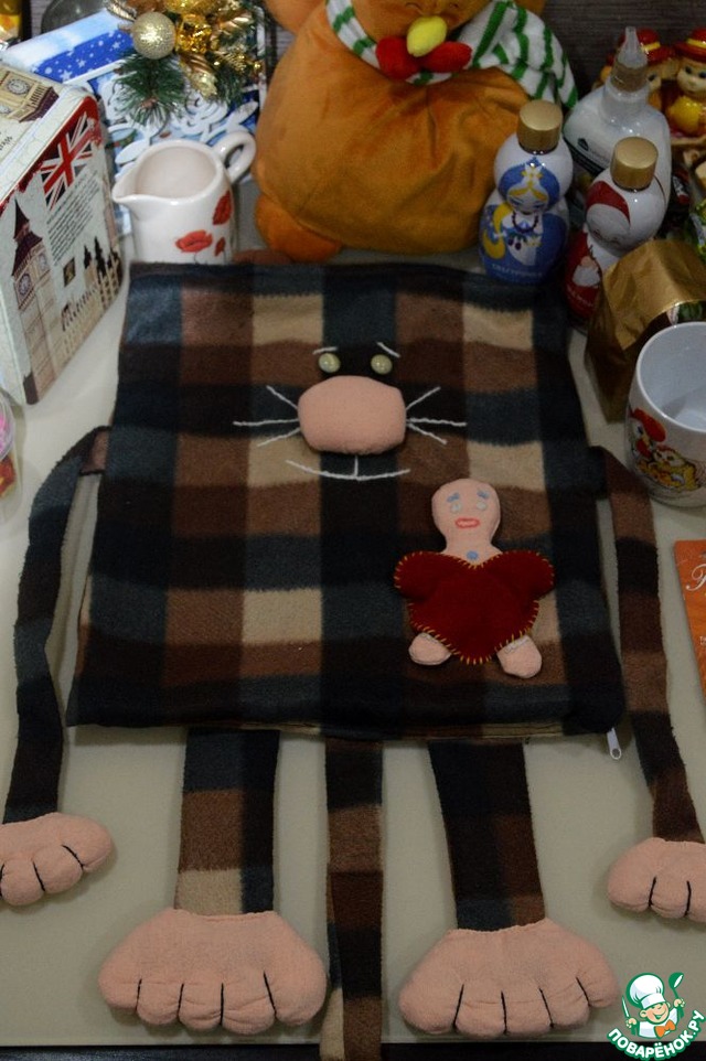 А ещё, необыкновенный чехол на подушку в виде кота с пряничным человечком в кармашке. Ну сами посмотрите, разве не чудо?