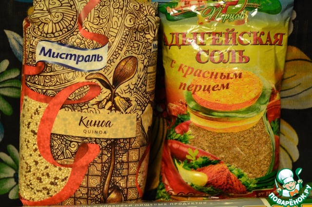 Это пачка мистралевской киноа - Лена знает, что я часто участвую в конкурсах. И пачка адыгейской соли с красным перцем - у меня только без перца, я такую даже не видела.