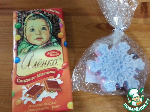 Да же о моей сестренке Иришечка позаботилась и прислала ей вкусный шоколад и мыло ручной работы в виде двухцветной снежинки. Ириш, отдельное спасибо от моей сестры!!!