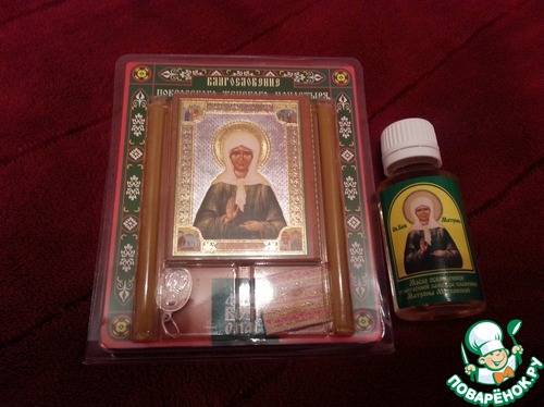 А это для души, иконка с ликом Матронушки Московской и освященное масло из монастыря Матронушки.