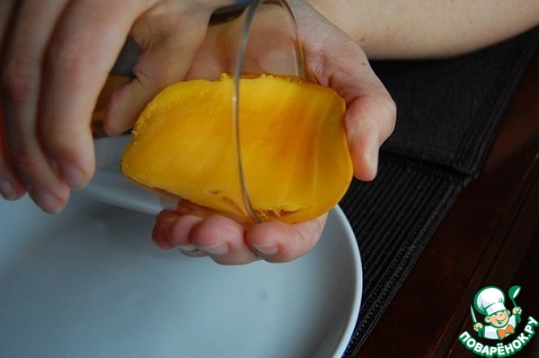 8. Манго, киви и авокадо удобно чистить с помощью стакана.