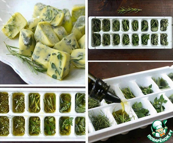 12. Желтеющая зелень — ценный продукт, не спеши ее выбрасывать. Мелко нарежь зелень и смешай с оливковым маслом. Залей смесью формочки для льда и отправь их морозилку. Чудесная заправка для салатов, соусов и супов!