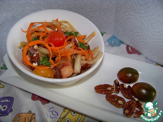 Очень вкусный салат! Готовила с орехами Пекан. Орехи и заправка придают изысканность и яркость вкусу! Очень понравился!
