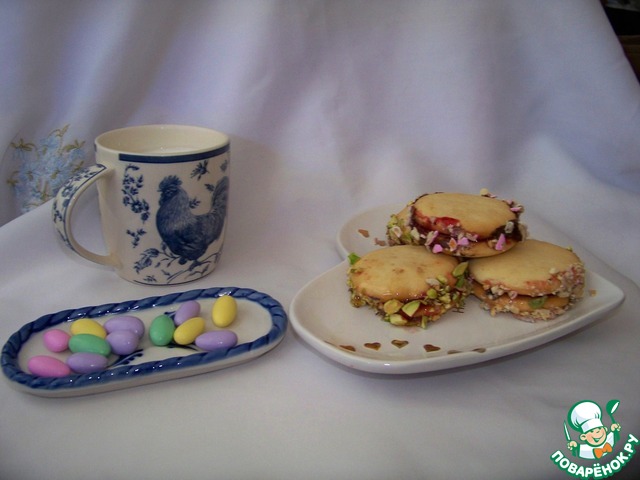 Утро было ну очень добрым! Печенюшки божественные и по красоте, и на вкус! Украсила фисташками и кондитерской крошкой, прослойка-брусничное варенье! Готовила уже много раз и каждый раз-восторг и наслаждение!
