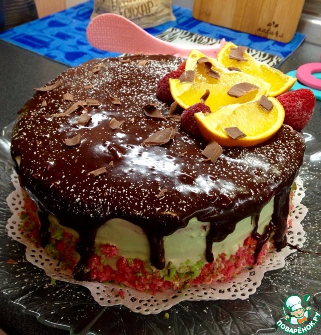 лимонные коржи, сырный крем с белым шоколадом и черничный джем для кислинки, глазурь шоколадная с черничным джемом и орешками.