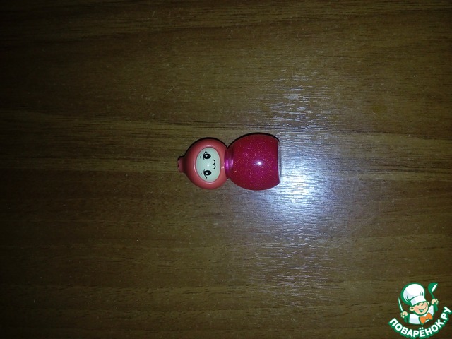 И последнее в списке, но не по значению (сразу не увидели, закатилось под ворох подарков) блеск для губ для моей маленькой модницы, в виде очаровательной куколки.
