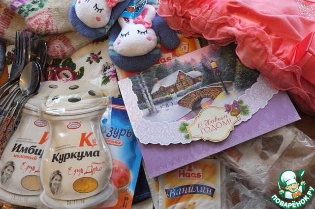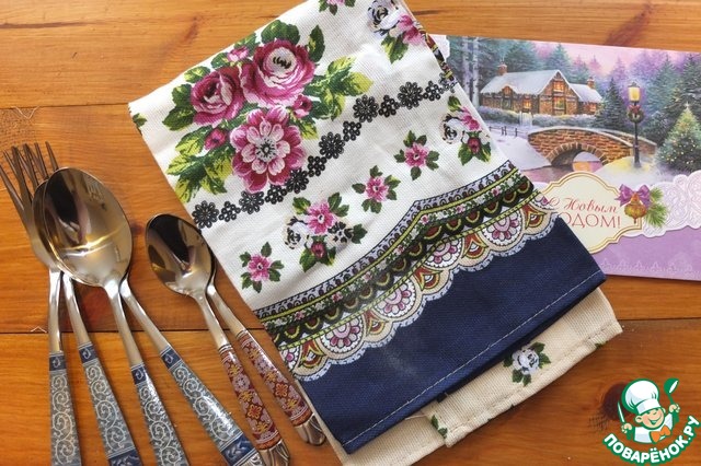Кухонное полотенчико, вилочки и ложечки потрясающие просто! Открыточка с теплыми пожеланиями!!