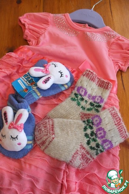 Когда я увидела платьице, аж взвизгнула от радости, а доченька широко улыбнулась!! Красивое платье для моей маленькой принцессы, очаровательные варежки и носочки!!!