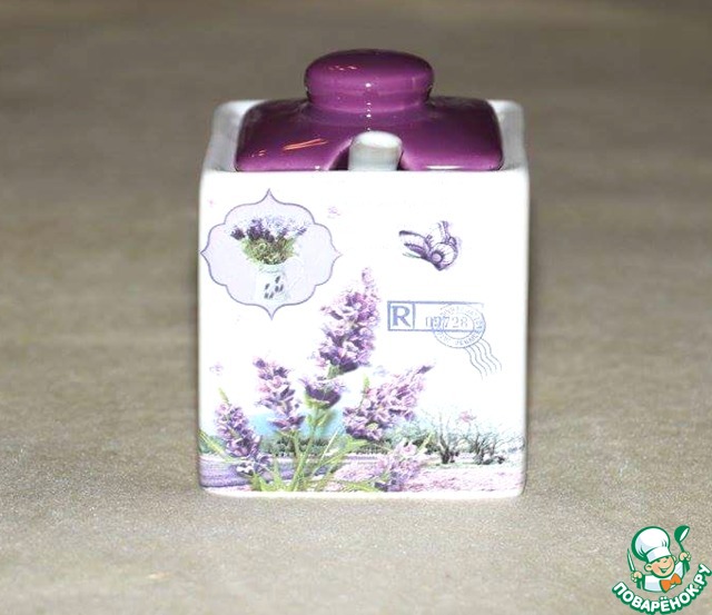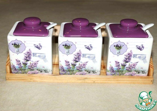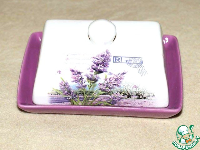 Чудесная открыточка с душевными поздравлениями, милейшие баночки на деревянной подставке и маслёнка! Прелесть! Мне очень нравится лаванда!