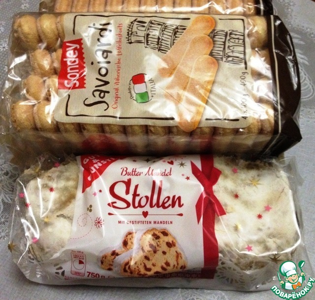А там - целое богатство! Савоярди и традиционный немецкий штоллен, который я так люблю! Олюшка каждый Новый год присылает его.