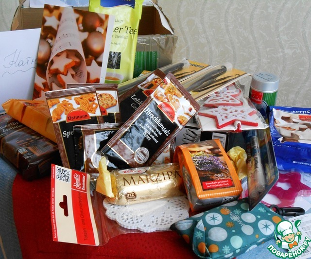 Как хорошо, что Инга написала письмо, в котором все подробно описала, и я быстро разобралась, что есть что: цветки лаванды, бобы тонка, марципан, стручки ванили, белый и черный шоколад для приготовления глазури. А еще рождественские пряности для пряников, имбирного печенья, штоллена и специальные пряничные разрыхлители. Кстати, я очень люблю пряники, но сама никогда не готовила. Вот теперь и попробую!