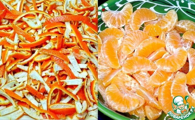 Почистила мандарины. Корочки порезала соломкой.