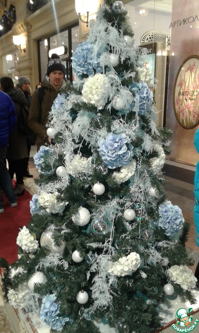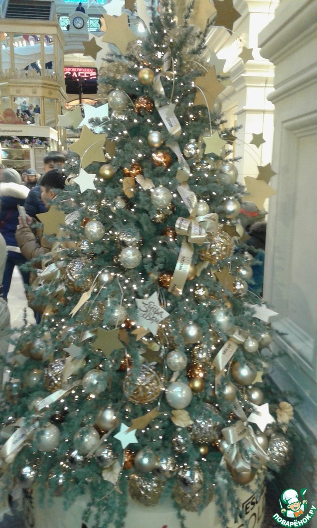 А потом мы поехали поближе к Красной площади, и попали в ГУМ. Боже, не была в нём, лет 20!!! Удивительно!!! Гуляющего народа очень много, а в бутиках, только продавцы и охрана, и кое где один, два покупателя. Увидели огромную очередь, как вы думаете, за чем? За МОРОЖЕННЫМ!!! Решили постоять, и поесть вкусного мороженного. В очереди простояли 20 мин, но вкуса того мороженного из детства, к сожаленью не осталось! Очень понравилось разнообразие новогодних красиво украшенных ёлок, каждая из них не похожая на предыдущую. Что бы всё запечатлить, нужно устраивать целую фотосессию.
