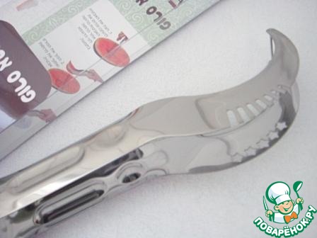 Расскажу немного подробнее о ноже. Его уникальная конструкция сочетает в себе функциональный нож, позволяющий нарезать ровные, идеальной толщины, ломтики и удобные щипцы, чтобы захватывать ломтики арбуза при сервировке.