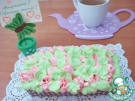 А в прямоугольных формочках я приготовила бисквит и украсила его цветами из крема, сделанными с помощью замечательных насадок, работать с которыми - одно удовольствие!